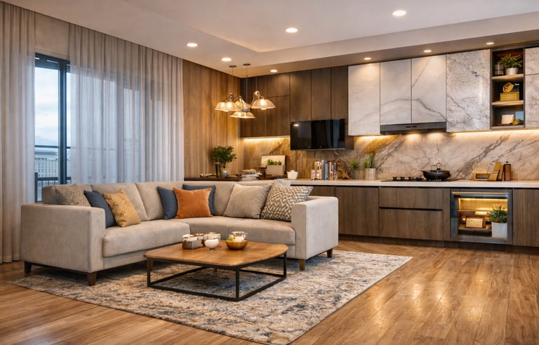 We design premium modular kitchens, false ceilings, wardrobes & full home interiors for Raipur, Naya Raipur & nearby Chhattisgarh areas.